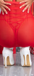Het Santas Candy Kerstjurkje voelt vanaf het eerste moment alsof je in een zoete, speelse kerstfantasie stapt. De doorzichtige rode stof geeft je een licht en vrij gevoel, terwijl de witte pluizige details je look een zachte winterglans geven. De halternek opent je houding op een elegante manier en laat je schouders mooi uitkomen, waardoor je meteen die vrouwelijke, verleidelijke flair voelt die zo goed past bij decemberavonden vol verwachting.