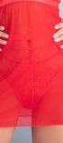 De stof is luchtig en glad, zonder harde randen, zodat het jurkje soepel met je meebeweegt. Bovenaan is het kanten gedeelte versierd met wit pluizig bont dat zacht tegen je huid rust en een lief contrast vormt met het rode kant. Aan de achterkant blijft je rug sensueel open dankzij de fijne bandjes die comfortabel blijven zitten. Onder de transparante laag komt de bijpassende slip prachtig tot zijn recht. Het is zo’n detail dat de set nét dat ondeugende randje geeft zonder zijn elegantie te verliezen. De schattige haarband met kerstmutsje maakt het geheel helemaal af met een knipoog.